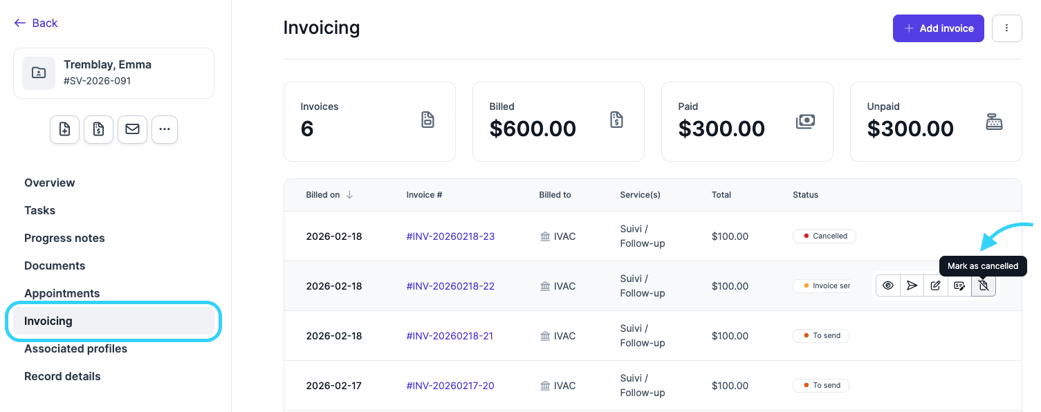 When payment is received, you can mark an invoice as paid and send the receipt, either during invoice creation or later, directly from the Invoicing tab in the client’s record. Option 1 — Send the receipt when creating the invoice If payment has ...