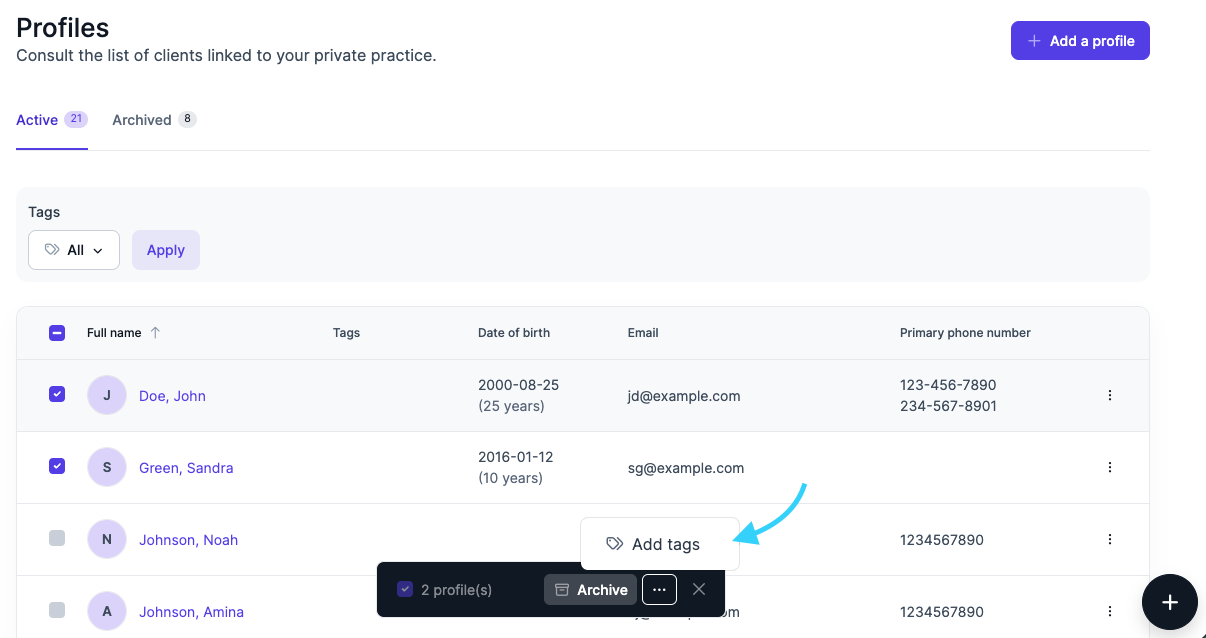 How to use tags?Step 3: Apply the tag to the relevant profiles