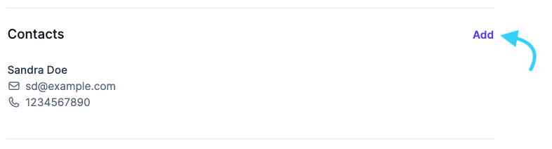 The Contacts section of a profile allows you to save information about parents, guardians, or any other person associated with a client or a student. It is especially useful for managing follow-ups and invoices for minors.