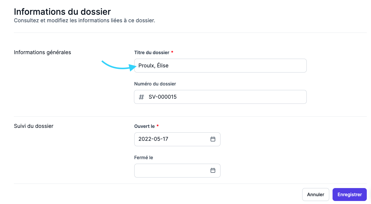 - Modifiez le champ Titre du dossier.