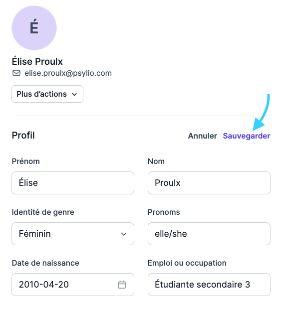 Psylio vous permet de consulter séparément vos dossiers et votre liste de client·es ou d'élèves. Cette distinction facilite la gestion des suivis ainsi que des personnes actuellement suivies ou en attente de services. Qu’est-ce qu’une fiche ? La ...