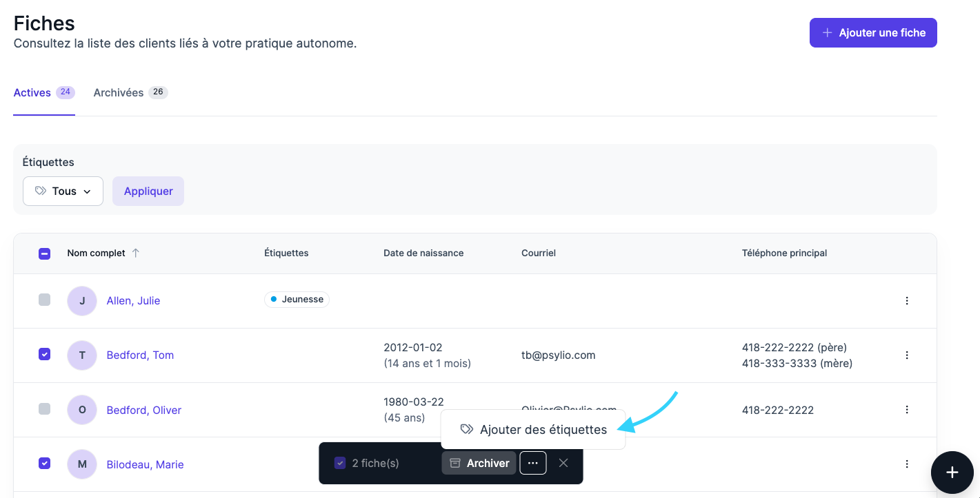Comment utiliser les étiquettes ?Étape 3 : Ajouter l’étiquette aux fiches concernées
