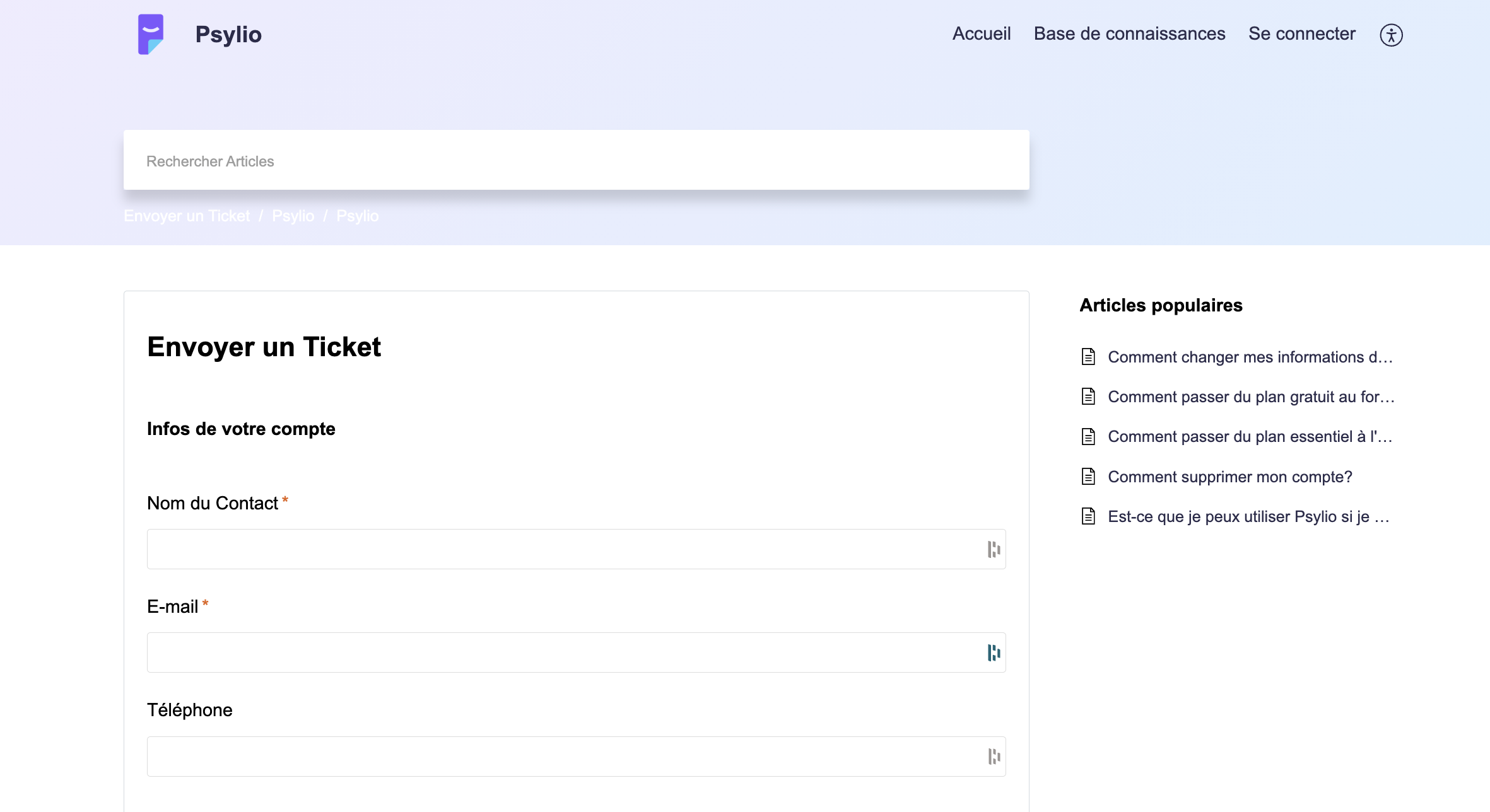 - Vous serez ainsi dirigé directement vers le formulaire de d'envoi d'un Ticket qui vous permettra de nous contacter.